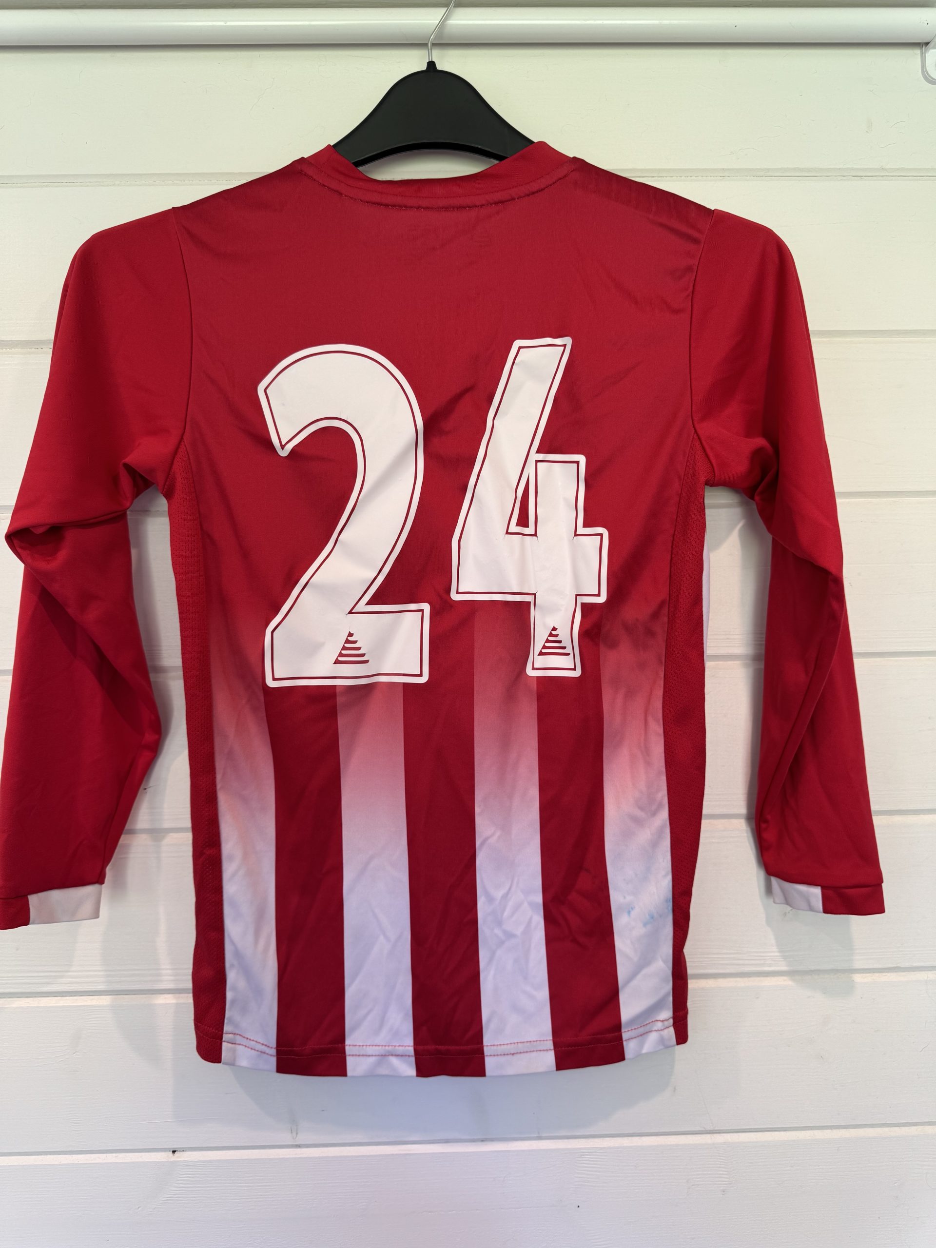 24/25 Season U10s red and white match day shirt.